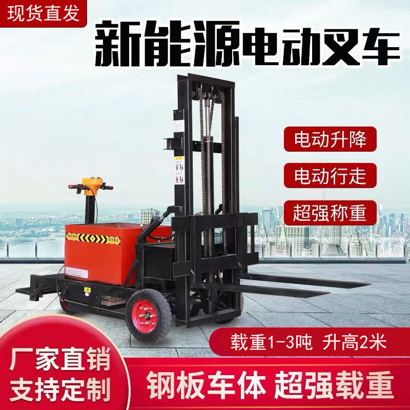 东营市小型电动叉车1吨站驾式2吨液压升高铲车全自动仓储堆高车